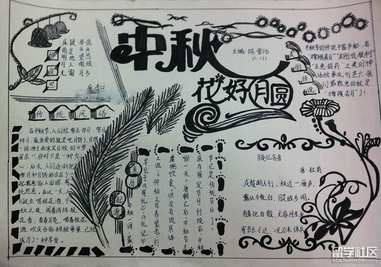 相隔十萬八千里,卻沐浴在同一片月光下,迎接同一個節(jié)日,下面出國留學(xué)網(wǎng)小編為大家?guī)砹?017年歡慶中秋節(jié)手抄報花邊設(shè)計,僅供參考,謝謝閱讀。