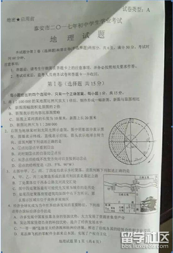 付出終有收獲,努力會(huì)有結(jié)果,功名成就在即,此刻莫要焦慮,心中會(huì)有擔(dān)憂,黎明前的節(jié)奏,中考就如行舟,隨風(fēng)隨水無(wú)憂。出國(guó)留學(xué)網(wǎng)中考欄目為你提供“[2017年泰安中考地理真題含答案]”!更多中考內(nèi)容請(qǐng)持續(xù)關(guān)注本站!