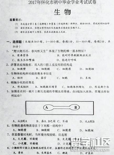 每天都是一個(gè)起點(diǎn),每天都有一點(diǎn)進(jìn)步,每天都有一點(diǎn)收獲。以下內(nèi)容是由出國留學(xué)網(wǎng)小編為大家收集整理的[2017年懷化中考生物試題附答案(圖片版)],歡迎查看。小編也在此祝各位學(xué)子中考順利!