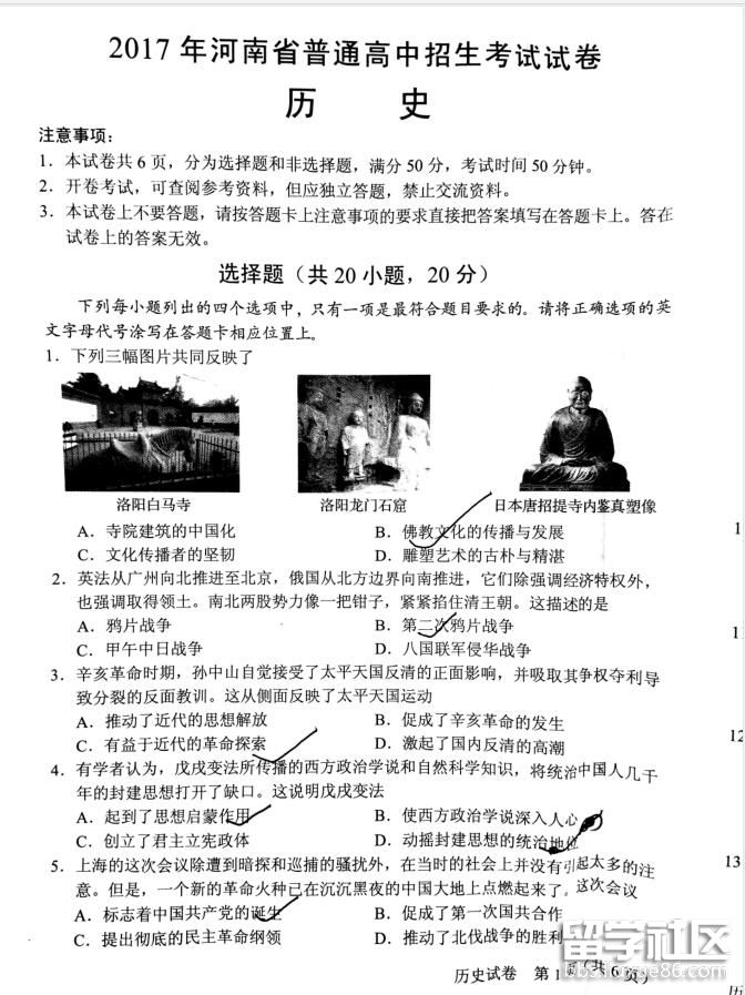 每天都是一個(gè)起點(diǎn),每天都有一點(diǎn)進(jìn)步,每天都有一點(diǎn)收獲。以下內(nèi)容是由出國(guó)留學(xué)網(wǎng)小編為大家收集整理的[2017年河南中考?xì)v史真題],歡迎查看。小編也在此祝各位學(xué)子中考順利!