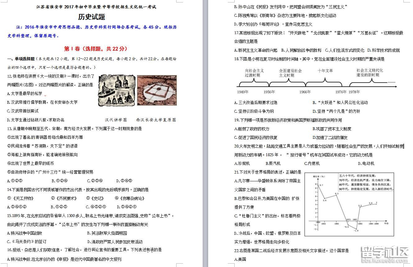 每天都是一個起點,每天都有一點進步,每天都有一點收獲。以下內(nèi)容是由出國留學(xué)網(wǎng)小編為大家收集整理的[2017年淮安中考?xì)v史試題附答案(word版)],歡迎查看。小編也在此祝各位學(xué)子中考順利!