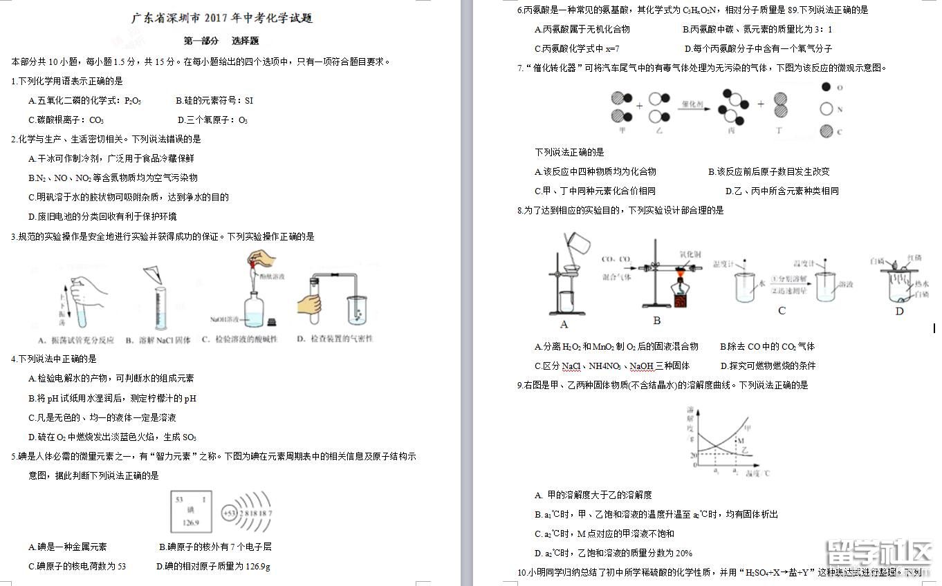 每天都是一個起點,每天都有一點進步,每天都有一點收獲。以下內(nèi)容是由出國留學(xué)網(wǎng)小編為大家收集整理的[2017年深圳中考化學(xué)試卷含答案(word版)],歡迎查看。小編也在此祝各位學(xué)子中考順利!