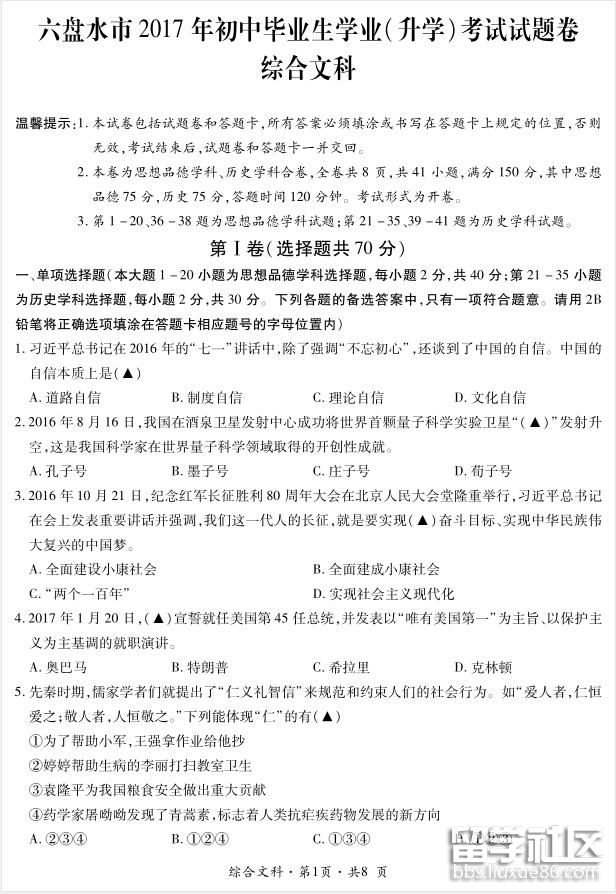 寒窗苦讀數(shù)十載,秉讀詩書千萬冊,日夜奮進(jìn)辛勞悴,只為今朝提名時。下面是出國留學(xué)網(wǎng)中考小編為您帶來的[六盤水中考政治2017年真題及答案解析],歡迎閱讀。