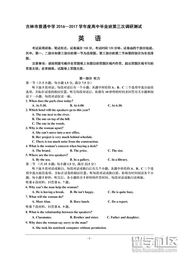 2017吉林三調(diào)考試已結(jié)束,為方便同學(xué)們復(fù)習(xí),出國留學(xué)網(wǎng)高考網(wǎng)小編整理了2017吉林三調(diào)英語試題及答案,供同學(xué)們參考學(xué)習(xí)。