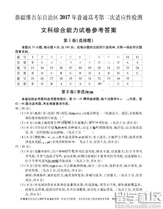 2017新疆二模將于3月27日-28日考試,為方便同學(xué)們復(fù)習(xí),出國(guó)留學(xué)網(wǎng)高考網(wǎng)小編整理了2017新疆二模文綜答案,供同學(xué)們參考學(xué)習(xí)。