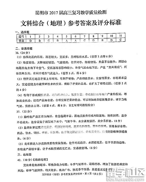 2017昆明高三復(fù)習(xí)教學(xué)質(zhì)量檢測(cè)于3月27日-28日考試,為方便同學(xué)們復(fù)習(xí),出國(guó)留學(xué)網(wǎng)高考網(wǎng)小編整理了2017昆明高三復(fù)習(xí)教學(xué)質(zhì)量檢測(cè)文綜答案,供同學(xué)們參考學(xué)習(xí)。