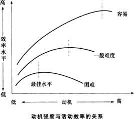 一般來(lái)說(shuō),動(dòng)機(jī)強(qiáng)度與活動(dòng)效率之間的關(guān)系大致呈倒U型曲線(xiàn),即中等強(qiáng)度的動(dòng)機(jī),活動(dòng)效率最高。動(dòng)機(jī)強(qiáng)度過(guò)低或過(guò)高,均會(huì)導(dǎo)致活動(dòng)效率下降。