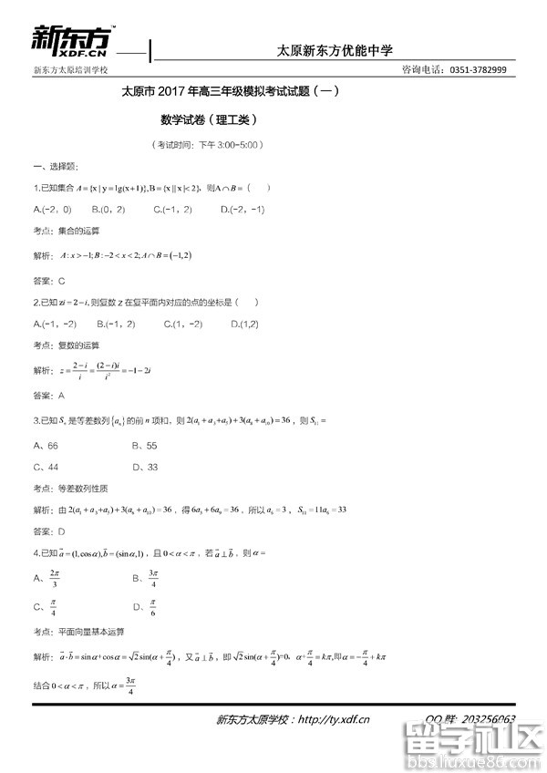 >2017太原一模試題及答案
