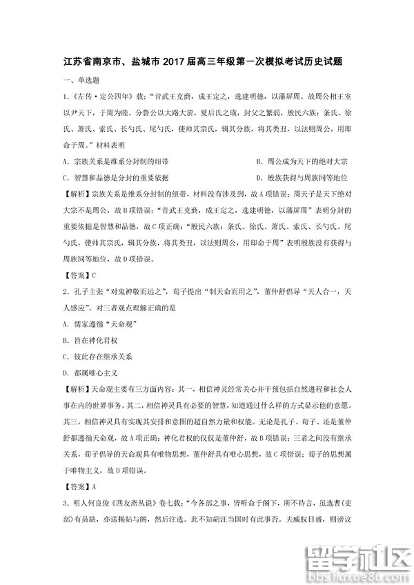 2017南京鹽城一??荚囈呀Y(jié)束,為方便同學(xué)們復(fù)習(xí),出國(guó)留學(xué)網(wǎng)高考網(wǎng)小編整理了2017南京鹽城一模歷史試題及答案,供同學(xué)們參考學(xué)習(xí)。更多高考一模試題及答案請(qǐng)點(diǎn)擊>>>全國(guó)各省市2017高三一模(高三一診)試題及答案匯總
