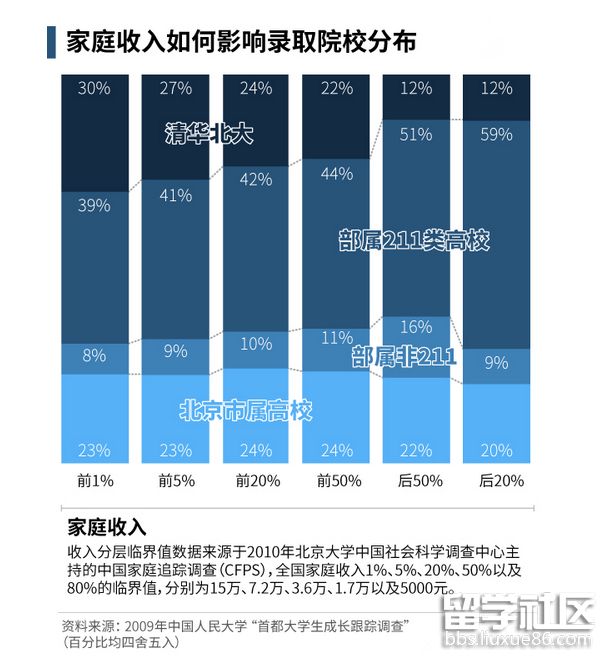 記者查閱了“首都大學(xué)生成長跟蹤調(diào)查”項目,這項由中國人民大學(xué)自2009年開始的北京大學(xué)生調(diào)查項目,通過科學(xué)抽樣,有效樣本是來自北京地區(qū)15所高校4771名在校生,并隨后兩年進(jìn)行回訪。數(shù)據(jù)顯示出,隨著家庭收入水平的下降,進(jìn)入頂級高校,諸如清華、北大的比例逐漸減低。