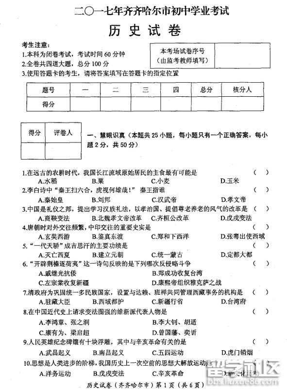 十磨百煉,鐵杵成針;千淘萬(wàn)漉,沙盡金見(jiàn)。以下是由出國(guó)留學(xué)網(wǎng)中考頻道編輯為您整理的 [2017年齊齊哈爾中考?xì)v史試卷含答案],供您參考。