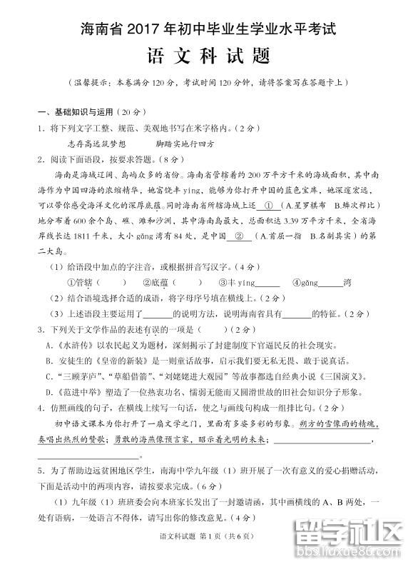 十磨百煉,鐵杵成針;千淘萬漉,沙盡金見。以下是由出國留學(xué)網(wǎng)中考頻道編輯為您整理的 [2017年海南中考語文真題含答案],供您參考。