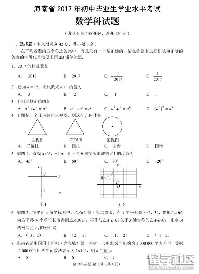 中考后不要迷茫,出國留學(xué)網(wǎng)小編將為您帶來“[海南中考數(shù)學(xué)2017年真題及答案解析]”,中考成績一旦公布也會(huì)第一時(shí)間更新,請各位考生及家長密切關(guān)注頁面更新,祝你的中考之路順暢無阻。