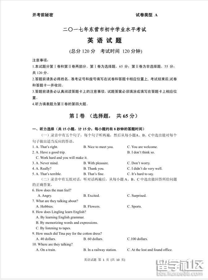 中考后不要迷茫,出國留學(xué)網(wǎng)小編將為您帶來“[東營中考英語2017年試卷及答案]”,中考成績一旦公布也會第一時間更新,請各位考生及家長密切關(guān)注頁面更新,祝你的中考之路順暢無阻。