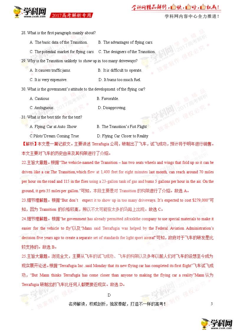 下載2017年高考全國卷2英語真題及答案解析(完整版)