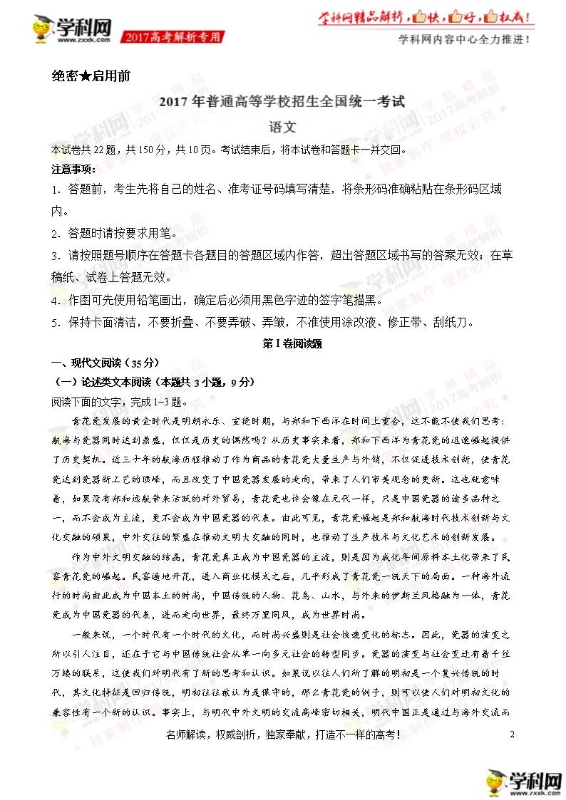 2017年高考全國卷2語文真題及答案解析(完整版)