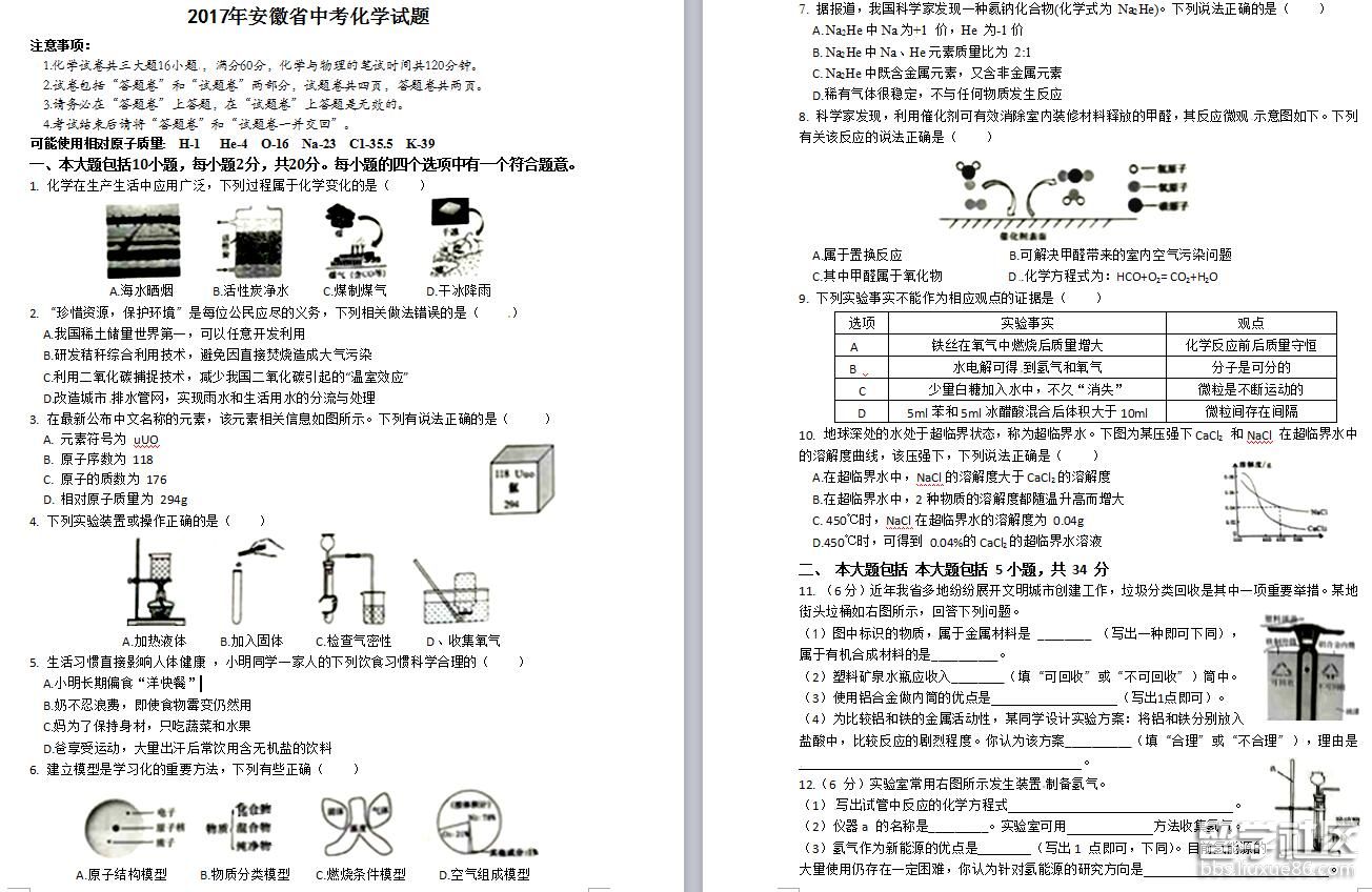 書山有路勤為徑、學(xué)海無涯苦作舟;海到無邊天作岸、山登絕頂我為峰。出國留學(xué)網(wǎng)中考頻道第一時間整理出[2017年安徽中考化學(xué)真題及答案(word版)],希望對你有幫助。