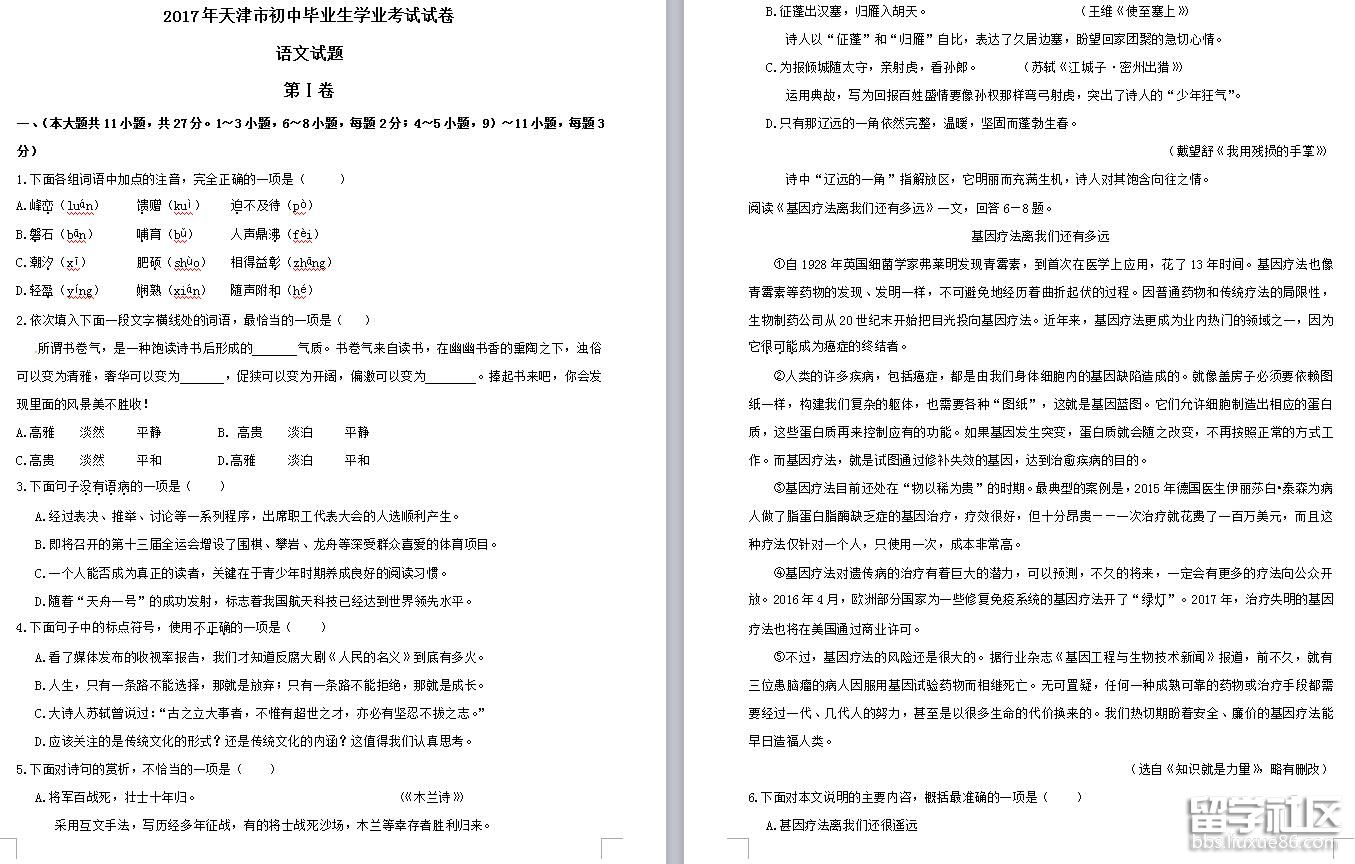 信心來(lái)自于實(shí)力,實(shí)力來(lái)自于勤奮!出國(guó)留學(xué)網(wǎng)中考頻道第一時(shí)間為您提供[2017年天津中考語(yǔ)文試卷],希望大家及時(shí)關(guān)注本頁(yè)面,可按Ctrl+D收藏本頁(yè)面。想了解中考成績(jī)查詢、分?jǐn)?shù)線、志愿填報(bào)、錄取查詢等相關(guān)信息請(qǐng)關(guān)注我們網(wǎng)站的更新!