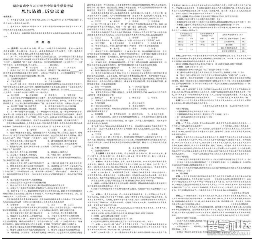 信心來自于實力,實力來自于勤奮!出國留學(xué)網(wǎng)中考頻道第一時間為您提供[咸寧中考政治2017年試題及答案],希望大家及時關(guān)注本頁面,可按Ctrl+D收藏本頁面。想了解中考成績查詢、分數(shù)線、志愿填報、錄取查詢等相關(guān)信息請關(guān)注我們網(wǎng)站的更新!