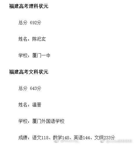 2017福建高考狀元出爐,理科狀元來自廈門一中,文科狀元來自廈門外國語學(xué)校。膜拜學(xué)霸