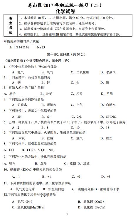 2017房山區(qū)初三二??荚囈呀?jīng)結(jié)束,出國留學(xué)網(wǎng)中考網(wǎng)整理了《北京房山區(qū)2017中考二?;瘜W(xué)試題》,供同學(xué)們和家長參考。