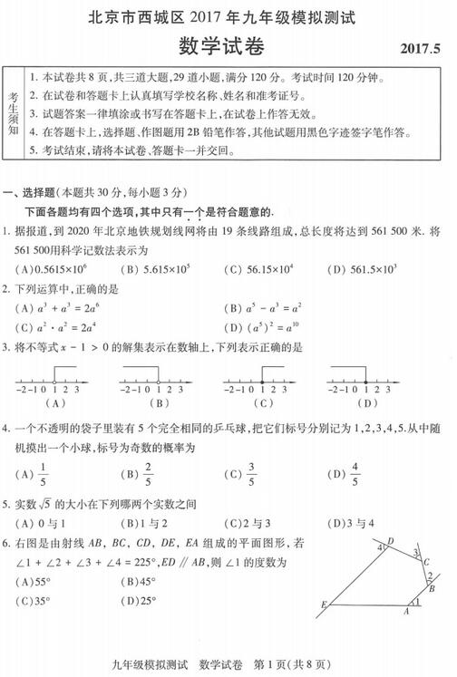 2017西城區(qū)初三二模考試已經(jīng)結(jié)束,出國留學(xué)網(wǎng)中考網(wǎng)整理了《北京西城區(qū)2017中考二模數(shù)學(xué)試題》,供同學(xué)們和家長參考。