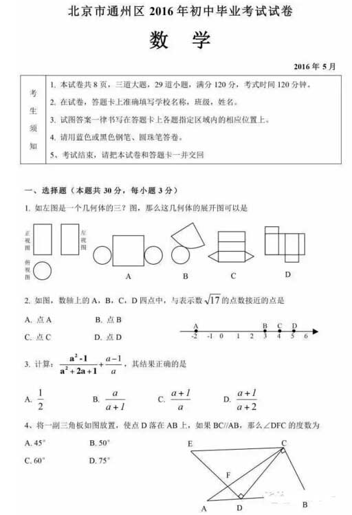 出國(guó)留學(xué)網(wǎng)中考網(wǎng)整理了《2016北京通州區(qū)中考二模數(shù)學(xué)試題及答案》,供家長(zhǎng)和中考生們參考,希望對(duì)大家有所幫助。
