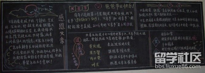以下是出國留學網(wǎng)編輯為您整理的父親節(jié)主題黑板報圖片素材,供您參考,更多詳細內(nèi)容請點擊出國留學網(wǎng)(https://m.liuxue86.com/heibanbao/)查看。
