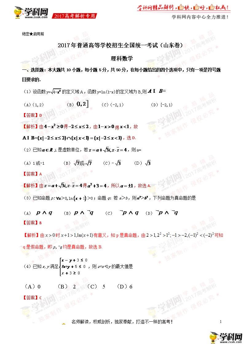 2017年聊城高考理科數(shù)學(xué)試題及答案解析
