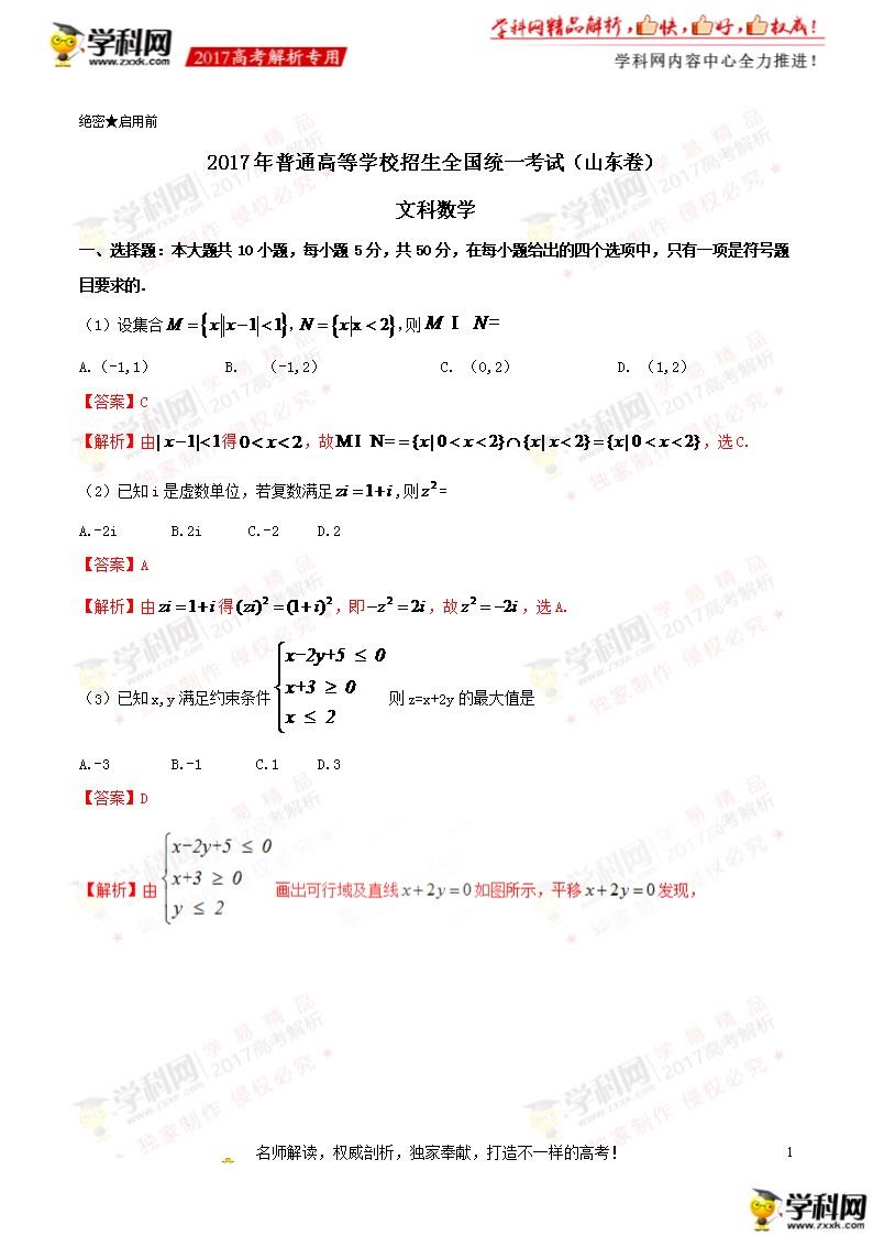 2017年濟(jì)南高考文科數(shù)學(xué)真題及答案解析
