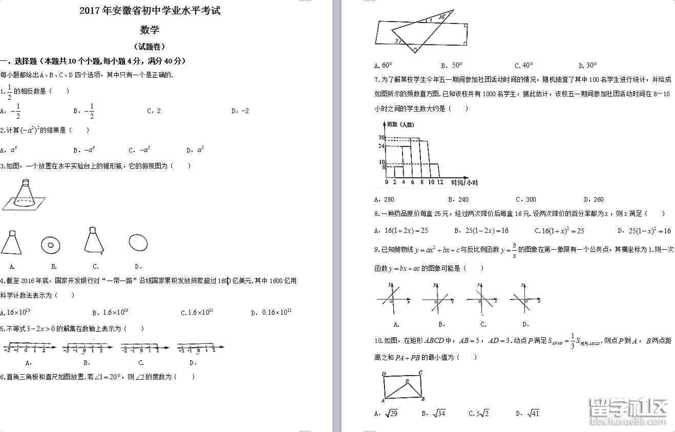 書山有路勤為徑、學(xué)海無涯苦作舟;海到無邊天作岸、山登絕頂我為峰。出國留學(xué)網(wǎng)中考頻道第一時間整理出[2017年安徽中考數(shù)學(xué)試卷含答案(word版)],希望對你有幫助。