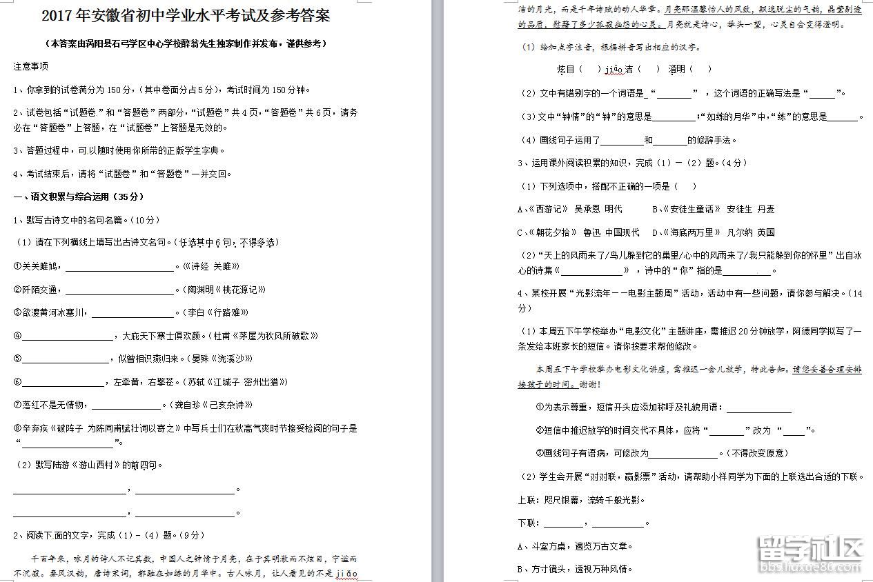 人生就是一考場(chǎng),準(zhǔn)備充分成績好。拼搏努力全做到,結(jié)果怎樣無愧心。人生之路千萬條,未必就是讀書高??紙?chǎng)之上人輕松,超常發(fā)揮不慌張。本文《2017年安徽中考語文真題及答案發(fā)布(word版)》由中考欄目提供,出國留學(xué)網(wǎng)愿你中考盡全力,學(xué)業(yè)有成人歡笑!