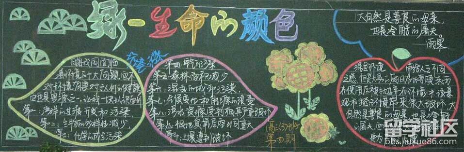 以下是出國(guó)留學(xué)網(wǎng)編輯為您整理的環(huán)保黑板報(bào)素材,供您參考,更多詳細(xì)內(nèi)容請(qǐng)點(diǎn)擊出國(guó)留學(xué)網(wǎng)(https://m.liuxue86.com/heibanbao/)查看。