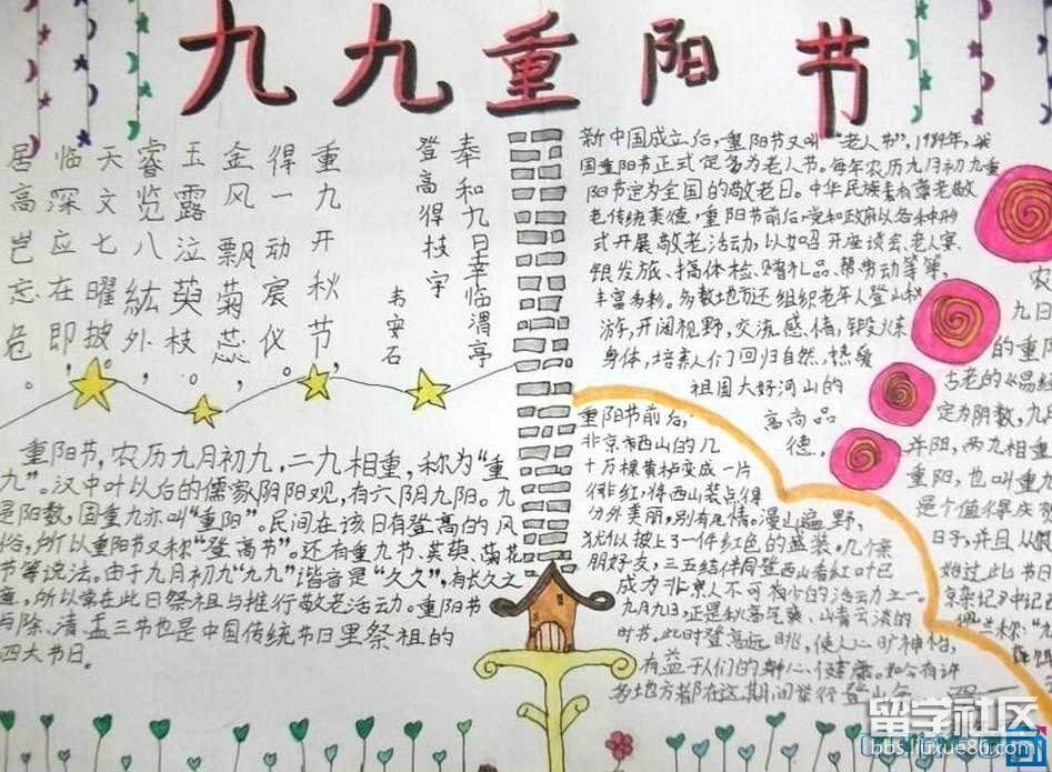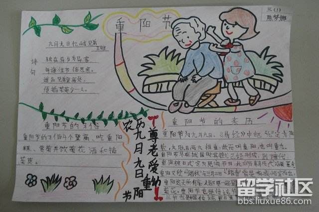 遙知兄弟登高處,遍插茱萸少一人,古人也很很關(guān)注重陽節(jié),每次重陽節(jié)都會回去看自己的長輩,下面是小編為大家?guī)淼娜昙壷仃柟?jié)敬老手抄報,僅供參考,更多你想要知道的信息可以關(guān)注出國留學(xué)網(wǎng),謝謝閱讀。