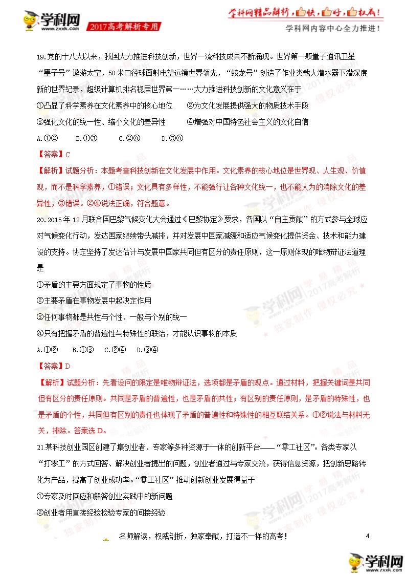 2017平頂山高考文綜真題及答案解析(圖片版)