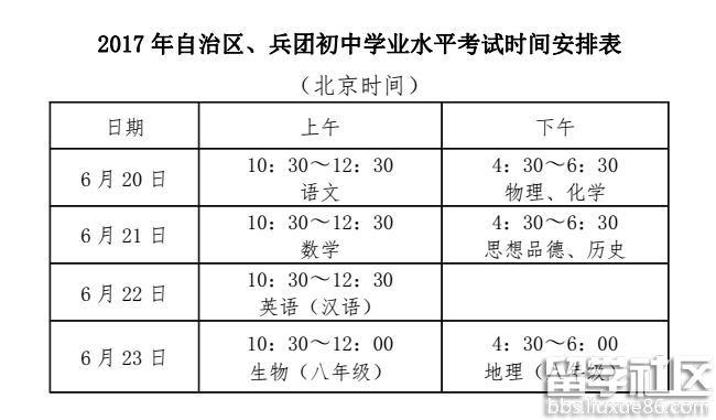 2017年新疆石河子中考時(shí)間已公布
