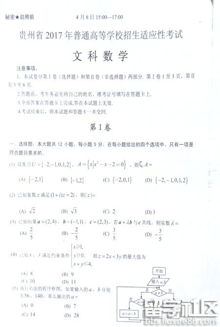 >2017貴州高三適應(yīng)性考試試題及答案匯總