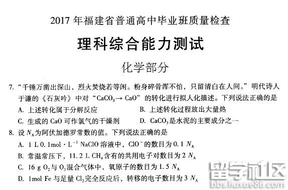 2017福建4月質(zhì)檢已結(jié)束,為方便同學(xué)們復(fù)習(xí),出國留學(xué)網(wǎng)高考網(wǎng)小編整理了2017福建4月質(zhì)檢化學(xué)試題,供同學(xué)們參考學(xué)習(xí)。