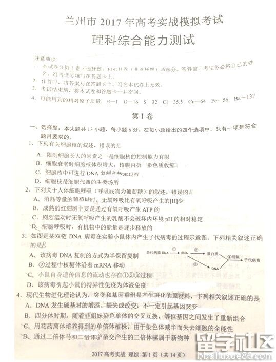 >2017蘭州二診試題及答案