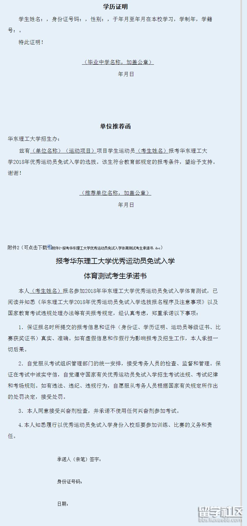 (8)報考華東理工大學(xué)優(yōu)秀運(yùn)動員免試入學(xué)體育測試考生承諾書(附件2,認(rèn)真閱讀有關(guān)條款并簽字確認(rèn));