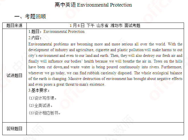 2017下半年教師資格證面試結(jié)束啦,考友們快來看看面試真題吧!出國留學(xué)網(wǎng)教師資格證考試網(wǎng)為您整理了《2017下半年高中英語教師資格證面試真題(第二批)》,希望對您有所幫助!祝各位面試成功!