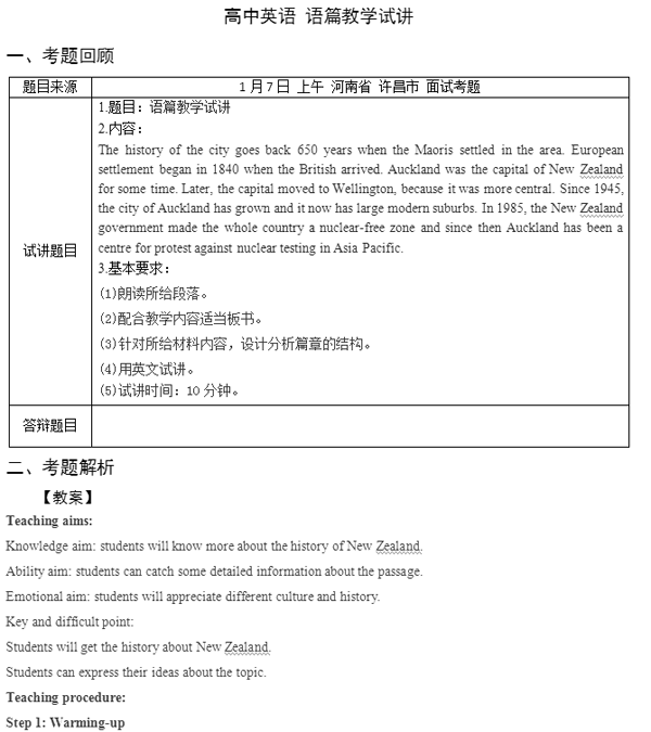 2017下半年高中英語教師資格證面試真題(第三批)