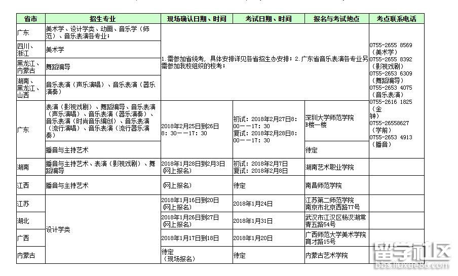 深圳大學2018年計劃招收國家任務全日制藝術類本科生約為657名,具體如下 :