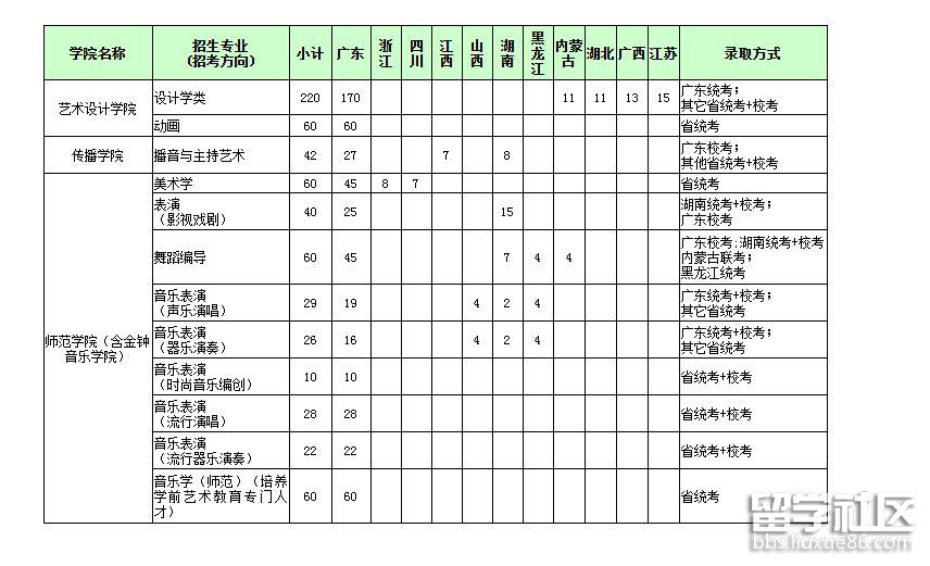 (2)廣西和湖南只招藝術文,其他省份為藝術文理兼招(文理不分計劃),內蒙古僅招漢授考生;
