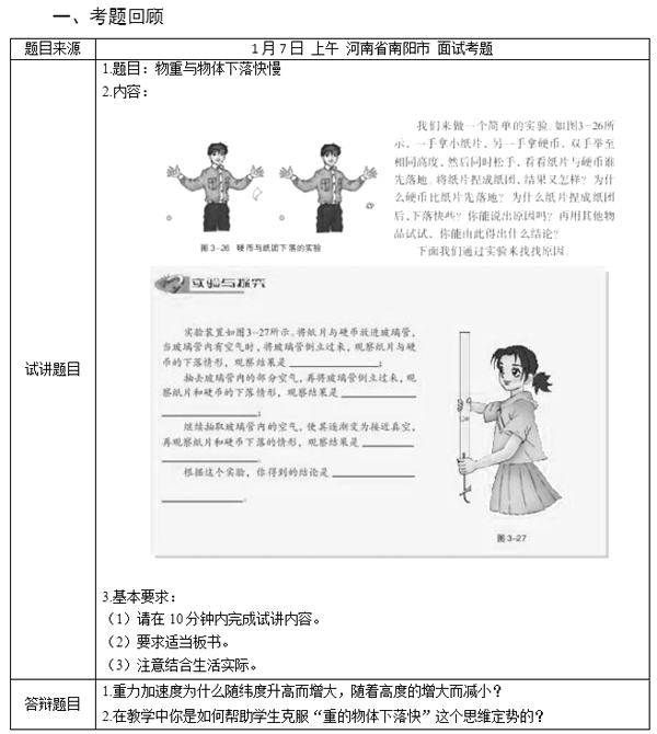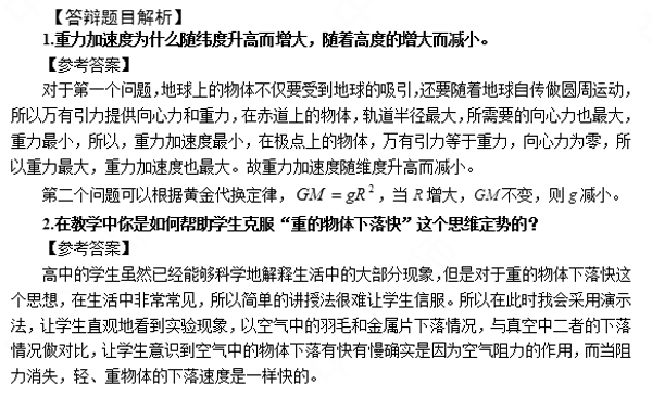 2017下半年高中物理教師資格證面試真題(第三批)