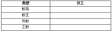 (2)教師出示白蟻的圖片,學(xué)生判斷不同白蟻的分工。并設(shè)計(jì)表格填寫白蟻種類以及不同分工。