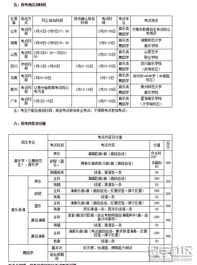 我校設(shè)置的所有??伎键c(diǎn),音樂類各專業(yè)的聲樂、鋼琴、器樂科目和舞蹈學(xué)專業(yè)的基本功、組合或劇目科目實(shí)行錄像評(píng)分的方式。視唱、視奏和練耳科目實(shí)行現(xiàn)場(chǎng)評(píng)分。
