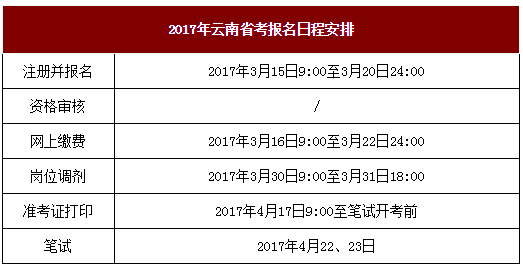 附:2017年云南公務(wù)員考試報名時間安排--僅供參考,2018年省考報名時間以公告發(fā)布為準(zhǔn)