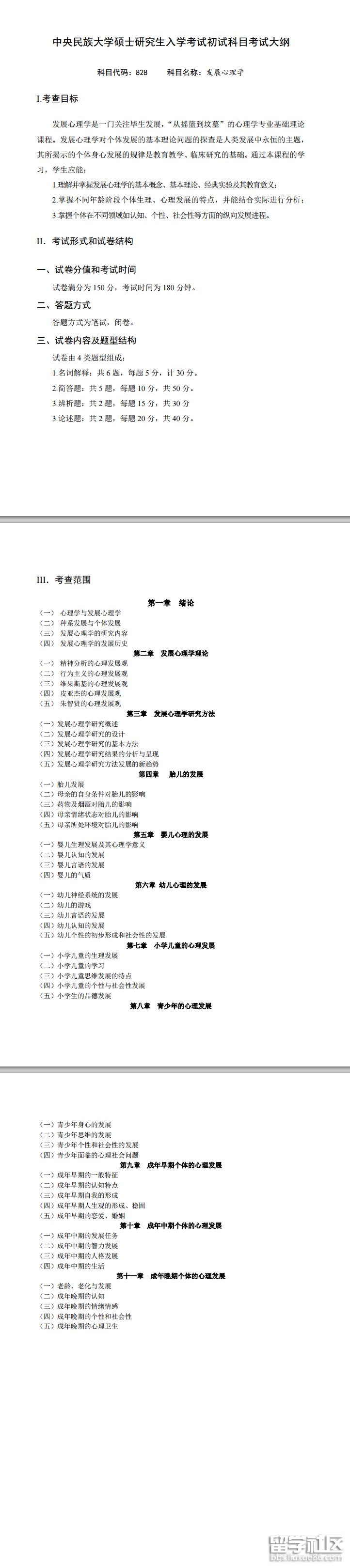 中央民族大學2019考研大綱:828發(fā)展心理學