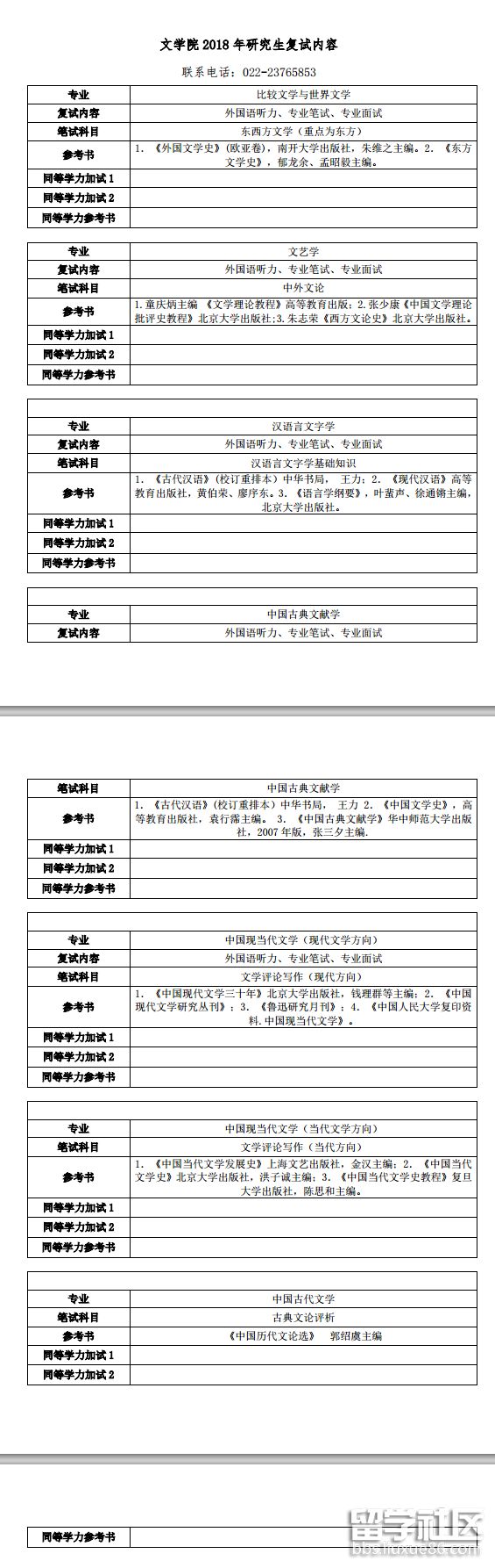 天津師范大學(xué)文學(xué)院2018考研復(fù)試內(nèi)容及參考書